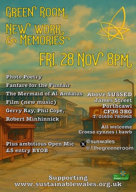 The green-lit function room situated above the Sustainable Wales 'Sussed' shop in Porthcawl hosted an evening of poetry and PhotoPoetry last Friday 28 November and I went along to hear some of the poetry and meet the participants.
