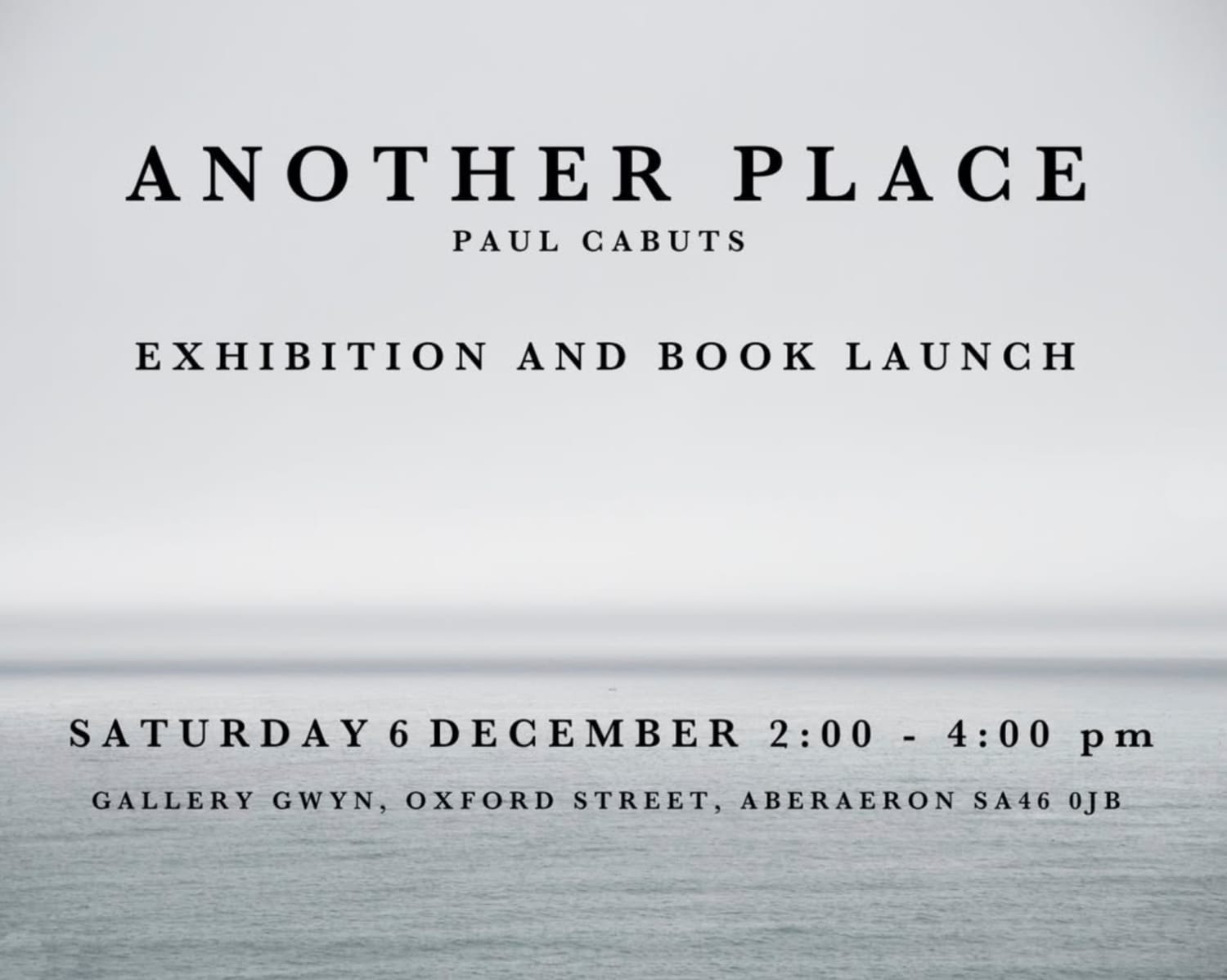 Gallery Gwyn in the seaside town of Aberaeron will host the launch of Paul Cabuts' next book 'Another Place' and an exhibition of the featured photography this coming Saturday 6 December.